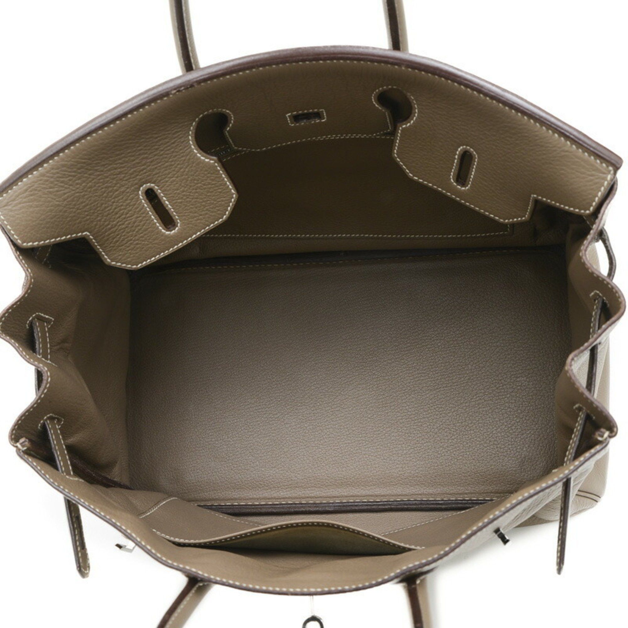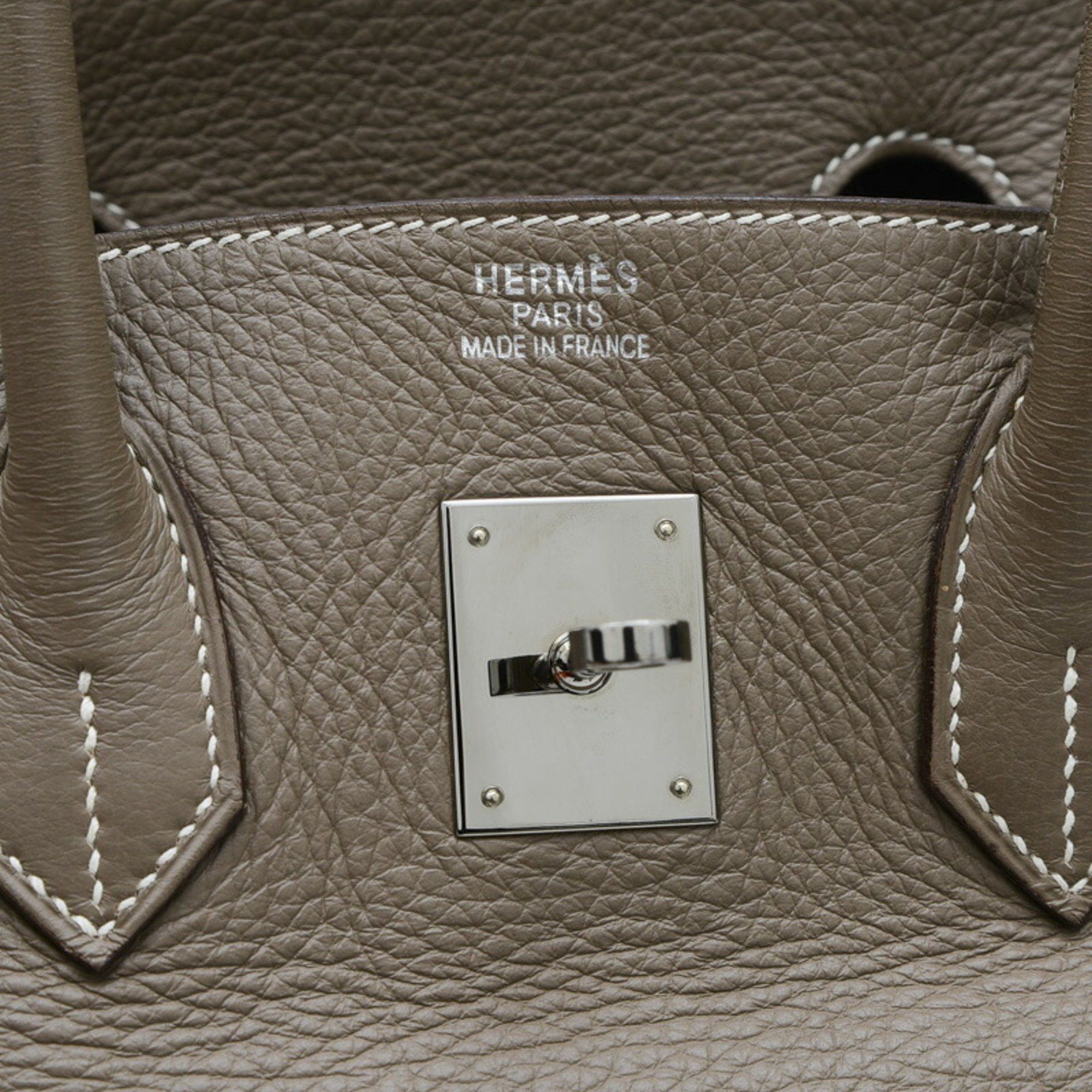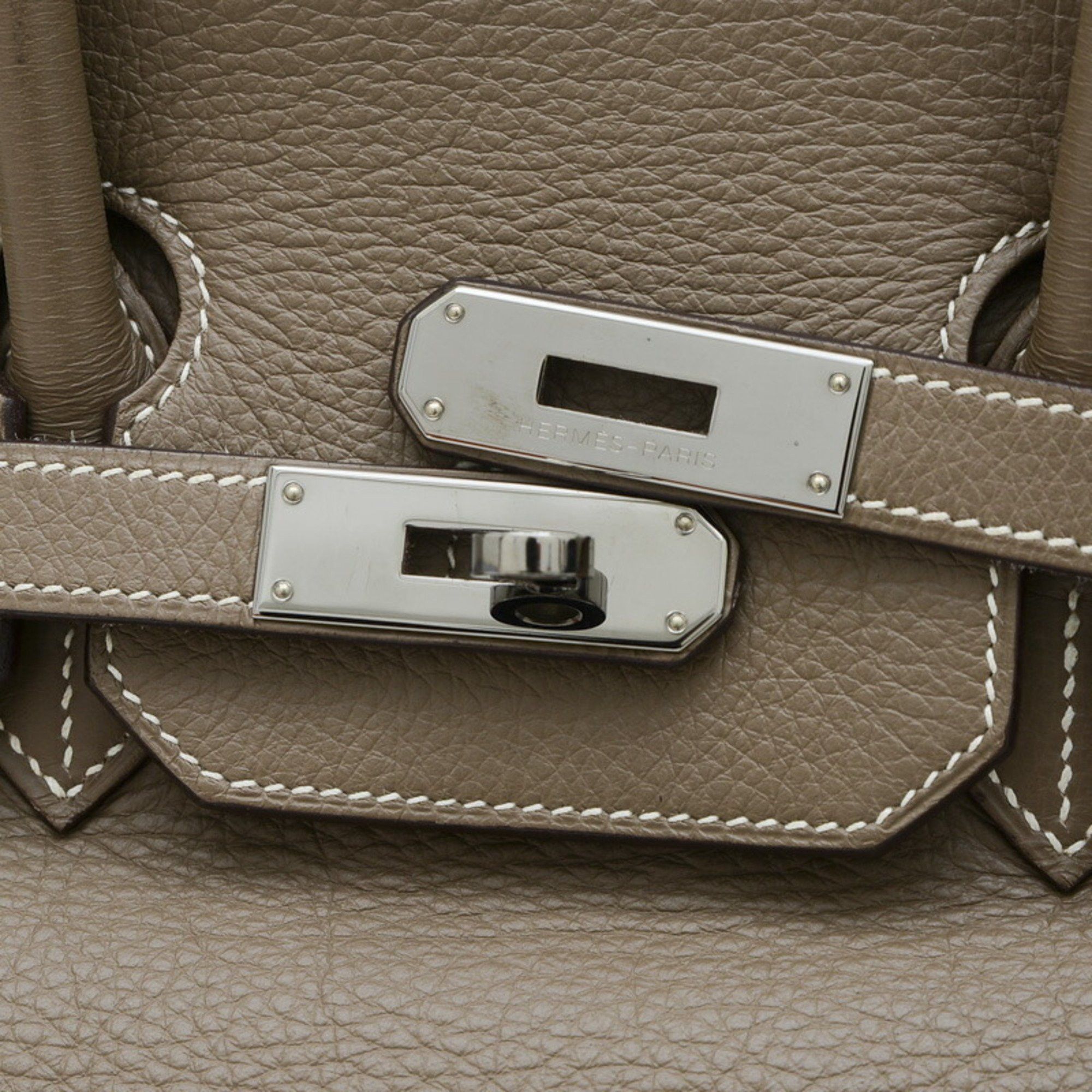 Hermes Birkin 35 handbag, Taurillon etoupe, ruthenium hardware, I stamp / Brand : Hermes Type : Handbag Material Fashion : Taurillon clemence leather Color Cases : Etoupe gray Gender : Men,Women Size Hxwxd Cm : 27cm x 35cm x 20cm / 10.62'' x 13.77'' x 7.87'' Width Cm : 35 Depth Cm : 20 Accessories : Clochette, Dust bag, Key, Padlock Accessories Notice : Before purchasing, please refer to the images of the accessories included with the item. Condition : Used (very good) Condition : Rank A Used - A few traces of usage, some scratches / dirt can be seen but overall in very good condition Condition : Rank A Damage Ranking : Overall Misshapen Slight Condition Notice : Before purchasing, please refer to the images for the exact condition of the item. sku : GZl161s4 / Please kindly understand that import duties and charges are not included in the item price and these additional charges are the buyer's responsibility. It seems that packages are being inspected randomly and the custom charges are accordingly. Please check with your country's customs office to determine what the additional costs might be prior to buying.
